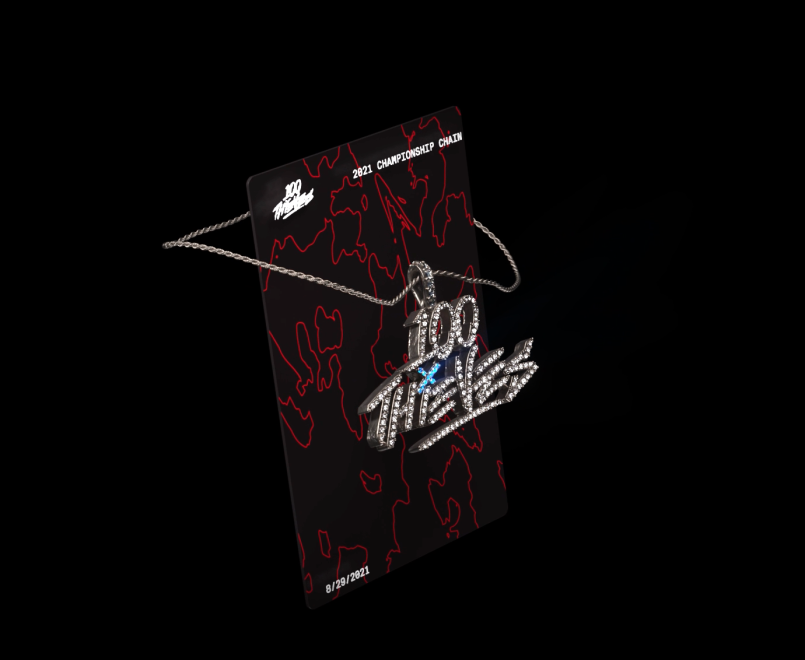 The NFT is available for a limited time on a 100 Thieves dedicated webpage, and is a rotating image of the diamond chains that were awarded to the players.