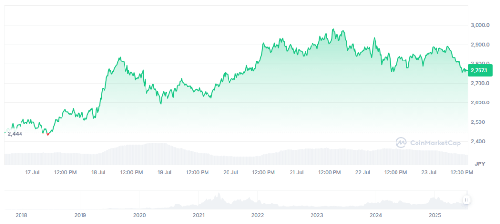 6月の安値から力強く反発したイーサリアムは、ETFへの資金流入と機関投資家の関心の高まりを背景に3,000ドルを回復した。7月中旬時点での取引価格は3,008ドル(約47万6,000円)で、取引量は急増し、センチメントは明確に強気へと転換している。