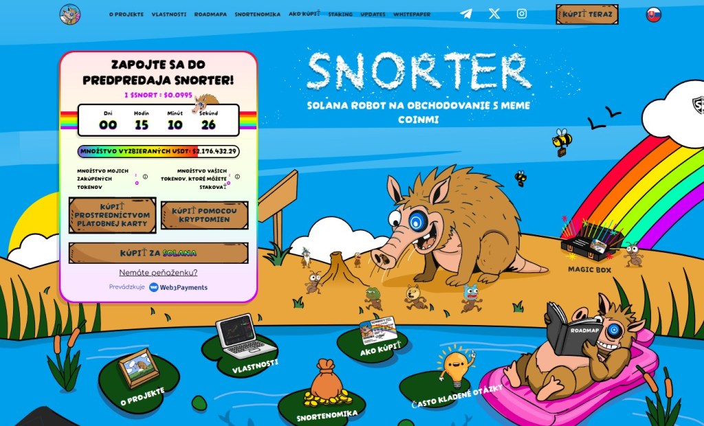 Snorter Token ($SNORT) je ďalší sľubný altcoin v tejto sezóne, ktorý sa vyznačuje satirickým štýlom a energickou komunitou. Projekt, označovaný aj ako „najdrzejší token na Solane“, nadchýna retailových investorov humorom a inteligentnou tokenomikou.