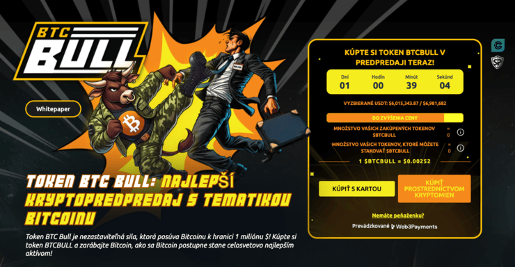 Medzi najzaujímavejšie nové kryptomeny patrí aj projekt BTC Bull. Tento inovatívny projekt sa zameriava na rast ceny BTC a vytvára ekosystém, ktorý je priamo naviazaný na vývoj trhovej ceny najväčšej kryptomeny. Hneď v úvodnej fáze predpredaja vzbudil BTCBULL značnú pozornosť. Počas prvých minút vývojári projektu vyzbierali vyše 500 000 dolárov, čo poukazuje na silný investičný potenciál.