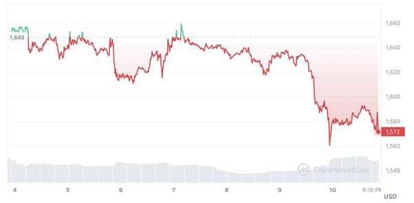While Bitcoin remains range-bound near the $27,500 price mark, altcoin crypto prices are falling sharply, leading to a liquidation of over $100 million worth of long positions. Ethereum, in particular, plummeted to the $1,555 mark yesterday, before bouncing back slightly – yet, the second largest cryptocurrency is down 5% over the past week.