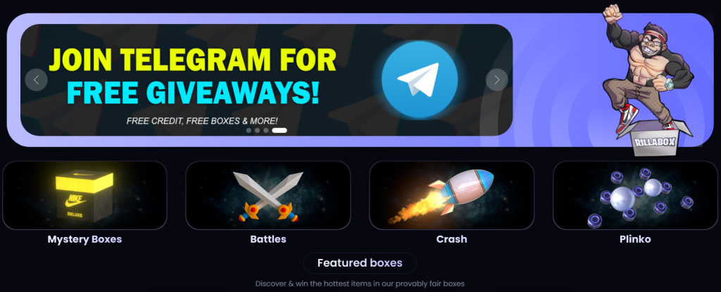 RillaBox is een snel groeiend platform met een focus op unieke promoties en winacties voor gebruikers. Bij RillaBox heb je de keuze uit meer dan 150 verschillende mystery boxes, en het platform heeft meer dan 500.000 geregistreerde spelers. Elke dag kun je weer terecht voor een gratis box om te openen zonder te betalen, en met een leuk loyaliteitssysteem verdien je exclusieve bonussen door je account te levelen. Verder zijn er extra bonussen en winacties via het Telegram kanaal, dit maakt het platform een aantrekkelijke keuze voor fans van winacties.