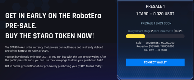Throughout stage one of the RobotEra presale, early investors will pay just $0.020 per token. Phase two will see $TARO tokens increase to $0.025. This is a 25% increase from the price that is available right now.
