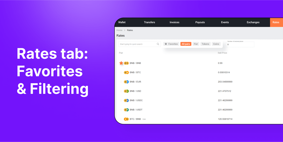 In a volatile market, stablecoins provide a level of predictability and protection. Before v17, B2BinPay offered merchants settlements in five significant currencies: BTC, USDT, USDC, USD, and EUR.
