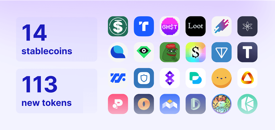 The B2BinPay Enterprise blockchain wallet solution is a full ecosystem for corporate institutions designed for enterprises that wish to operate solely with cryptocurrencies and keep their holdings in the same coin they receive. Leveraging this robust base, the v17 update extensively broadens token offerings for enterprise clients, presenting 14 stablecoins and 113 fresh tokens over 14 diverse blockchain platforms, such as Ethereum, TRON, Binance Smart Chain, and more.