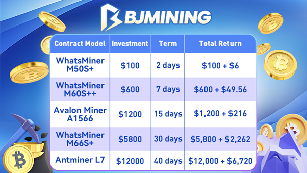 BJMining was founded in 2015 and is committed to providing low-threshold, high-security cloud mining services for holders of mainstream crypto assets such as Bitcoin. Users do not need to purchase any mining machines, nor do they need to bear high electricity bills and operation and maintenance costs. They only need to complete registration and recharge through a crypto wallet to participate in the cloud mining contract provided by the platform. The system will automatically issue mining income every 24 hours based on the content of the contract purchased by the user, truly realizing “letting digital assets make money on their own.”
