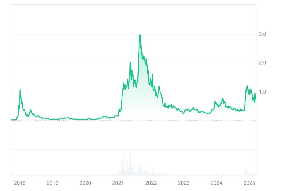 ADA war, genau wie der restliche Kryptomarkt, in den letzten Wochen von heftigen Turbulenzen erschüttert worden und erlebte eine insgesamt korrigierende Marktphase. Der Coin gehört zu den Kryptowährungen, die besonders stark von Donald Trumps Wahlsieg in den USA profitieren konnten, was im November 2024 eine Rallye von 0,30 $ auf bis zu 1,23 $ zur Folge hatte. Seitdem ist der Coin jedoch relativ kontinuierlich zurückgefallen und hat erst im Verlauf des letzten Monats neue Tiefststände von unter 0,60 $ erreicht.