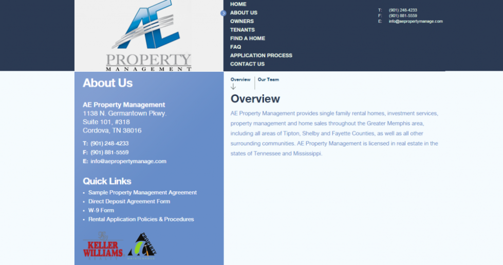 AE Property Management manages properties in the greater Memphis area and surrounding counties. AE Property Management provides single family rental homes, investment services, property management and home sales throughout the Greater Memphis area, as well as all other surrounding communities.