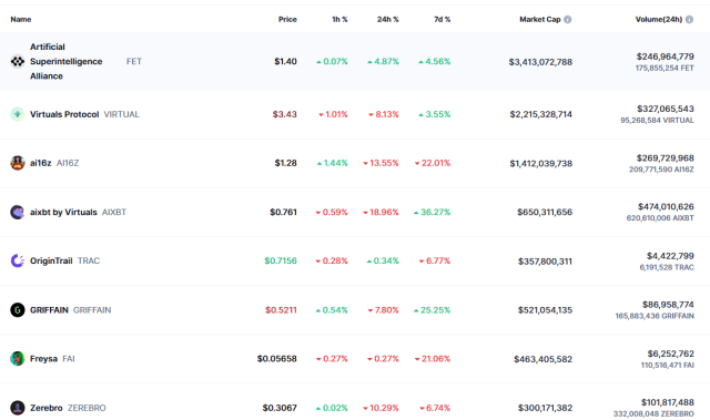 Selbst Coinmarketcap hat den Trend um künstliche Intelligenz erkannt und der Kategorie “AI Agents” einen festen Platz neben Memecoins, Solana Token und RWA eingeräumt. Die Marktkapitalisierung dieser Kryptowährungen liegt derzeit bei 11,27 Milliarden US-Dollar – ein Bruchteil des Gesamtmarktes. Zum Vergleich: Dogecoin, der größte Memecoin, erreicht allein 60 Milliarden US-Dollar.