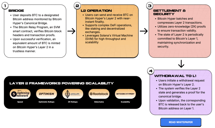 Základom fungovania Bitcoin Hyper je unikátny mechanizmus, ktorý umožňuje používateľom využiť svoje $BTC v rámci vlastnej siete. V praxi to funguje tak, že držitelia Bitcoinu môžu svoje mince presunúť na L2 blockchain Bitcoin Hyper.