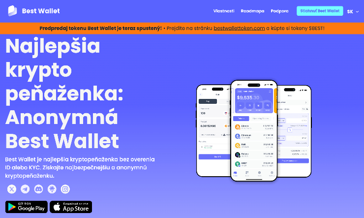 Best Wallet si môžete bezplatne stiahnuť z Google Play alebo Apple App Store. Po nainštalovaní aplikáciu otvorte a kliknite na „Get Started“. Na registráciu vám postačí e-mailová adresa. Pre vyššiu bezpečnosť odporúčame aktivovať dvojfaktorové overenie a biometrickú autentifikáciu.