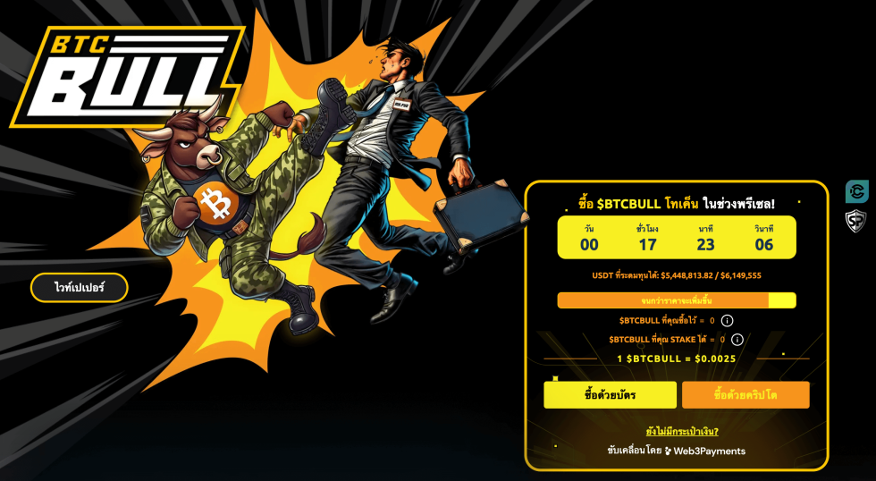 ขณะนี้ การเปิดขาย presale ของ $BTCBULL กำลังมาแรงอย่างมาก โดยสามารถระดมทุนได้มากกว่า $5.4M แล้ว โดยราคาเหรียญยังอยู่ที่ $0.0025 เท่านั้น แต่หลังเข้ากระดานเทรดแล้ว มีแนวโน้มจะเพิ่มขึ้นอย่างมาก