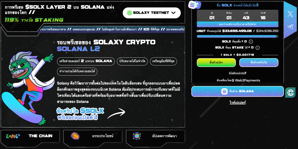 ปัจจุบัน Solaxy ได้รับความสนใจจากนักลงทุนอย่างล้นหลาม โดยในช่วง presale สามารถระดมทุนไปแล้วกว่า $33M