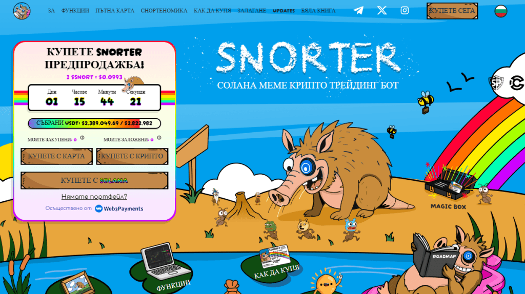 Но ранните инвеститори, търсещи потенциална печалба, нямат време за чакане. Предварителната продажба на $SNORT бързо се изчерпва — събрани са вече близо 2 млн. щатски долара, а стейкингът изкушава със 183% APY.