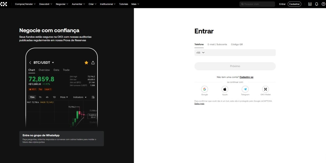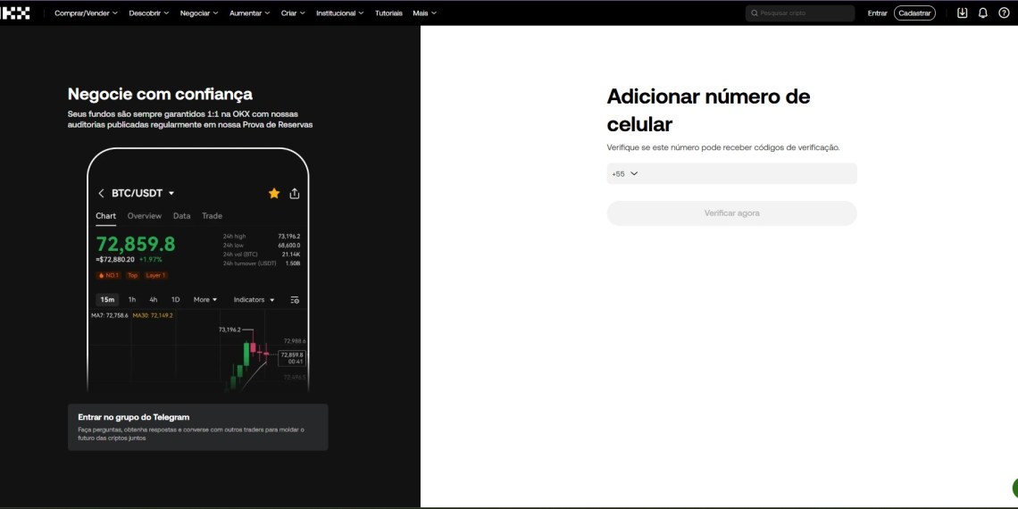 Pronto para testar a OKX? Cadastre-se agora com segurança e explore todas as funcionalidades que exchange oferece.