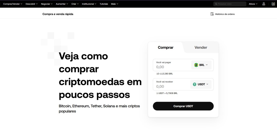 | Variedade de ativos | +350 criptos e +60 redes na Wallet | +350 ativos e ampla oferta em futuros e staking | Menor variedade, foco em ativos mais consolidados |