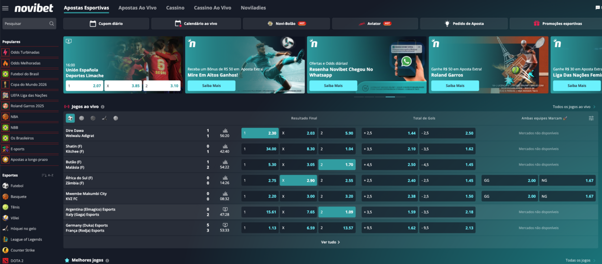 Se você gosta de diversão nas apostas esportivas ou quer viver uma experiência de cassino real, a Novibet é uma ótima escolha. O cassino Novibet é reconhecido pela confiabilidade, variedade de jogos e experiência autêntica, incluindo dealers ao vivo que falam português, proporcionando entretenimento seguro e diferenciado para jogadores brasileiros.
