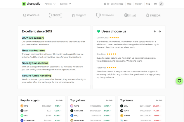 Το Changelly διευκολύνει τις ανώνυμες συναλλαγές και δεν απαιτεί KYC για τις περισσότερες ανταλλαγές. Παρέχει γρήγορες και διαφανείς υπηρεσίες, με ανταγωνιστικές συναλλαγματικές ισοτιμίες και αυτόματες συναλλαγές. Οι χρήστες μπορούν να ανταλλάξουν κρυπτονομίσματα σε δευτερόλεπτα, χωρίς καν να δημιουργήσουν λογαριασμό.