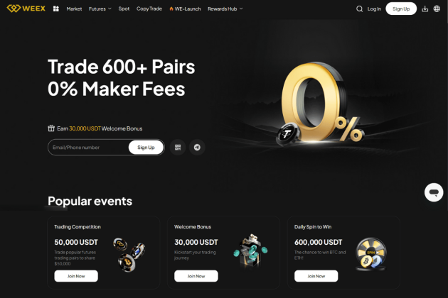 2. Weex – Ανταλλάξτε 600+ Ζεύγη με 0% προμήθεια κατασκευαστή