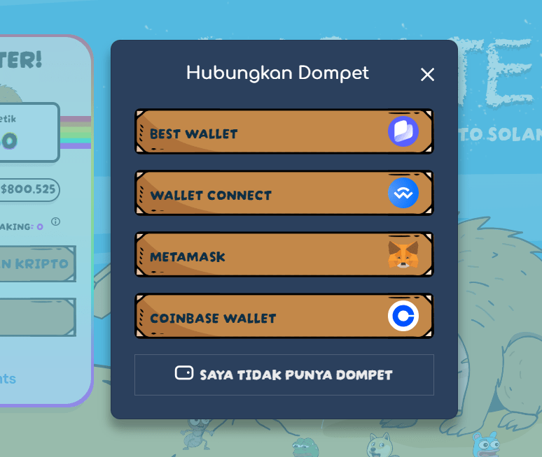 2. Sambungkan dompet digital Anda. Gunakan wallet Solana seperti Phantom, atau wallet berbasis Ethereum seperti Best Wallet.