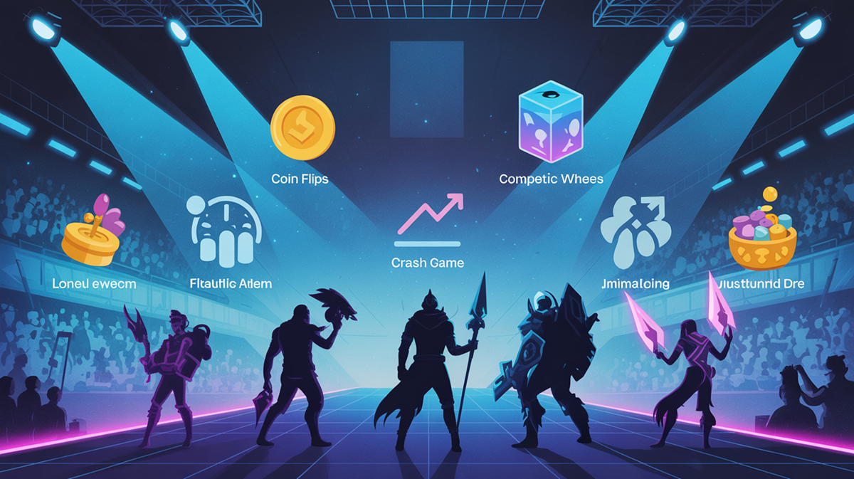 - Case Battles: Derivado da mania de abrir caixas virtuais (loot boxes), o case battle coloca dois ou mais jogadores para competir na sorte. Todos compram a mesma quantidade de caixas (ou caixas de valor equivalente) e as abrem simultaneamente, revelando seus prêmios. Quem obtiver o item de maior valor de mercado vence a “batalha” e fica com todos os itens revelados pelos participantes.