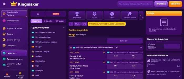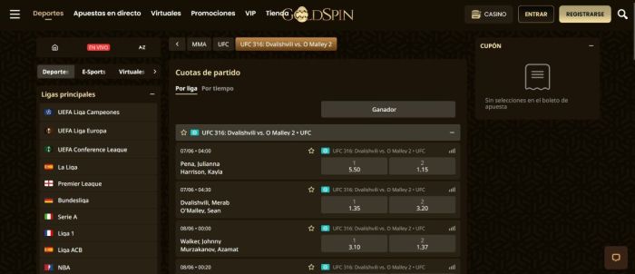 - Apuestas en vivo: Realizas pronósticos mientras el combate se desarrolla, aprovechando cambios en tiempo real.