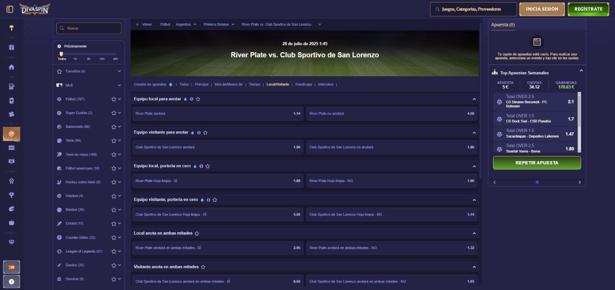 - Apuesta al ganador del partido: La opción más habitual. Solo debes predecir si River Plate ganará su partido, empatará o perderá frente a Racing en el Monumental. Es la apuesta perfecta para quienes siguen la actualidad de cada equipo.
