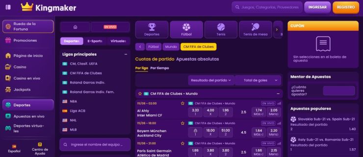 Las apuestas del Mundial de Clubes más comunes consisten en predecir qué equipo ganará un encuentro específico. Por ejemplo, en el partido inaugural del Grupo A entre Al Ahly e Inter Miami, puedes elegir si el equipo egipcio, el estadounidense o un empate será el resultado final. Estas apuestas seguras son ideales para quienes buscan simplicidad.