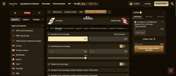 - Apuesta al ganador del partido: Predices qué equipo ganará, como los Lakers sobre los Celtics. Es la opción más directa y común. Ideal para principiantes.