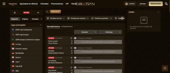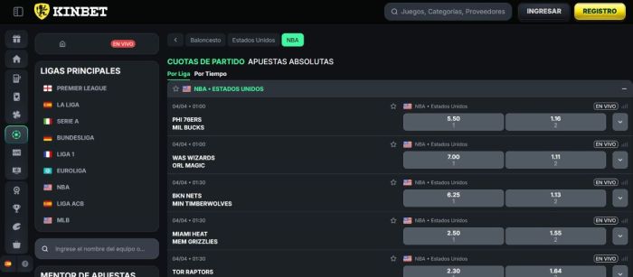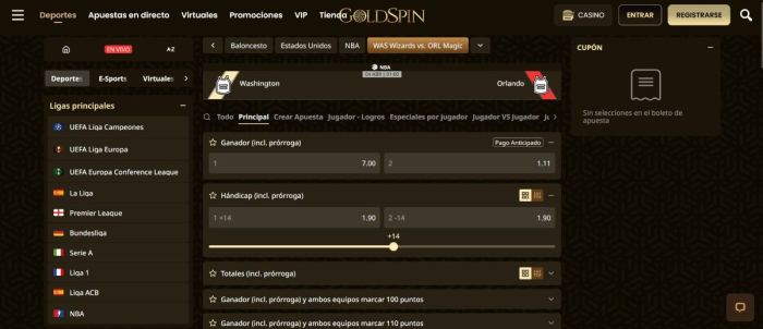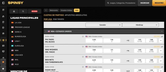 Tras seguir los pasos de registro y depósito, ya tendrás todo listo para apostar en la NBA. Ahora todo dependerá de tus propias elecciones. Dirígete a la sección de deportes y busca el apartado de ‘Baloncesto’. Luego, haz clic en ‘NBA’ y verás todos los partidos disponibles.