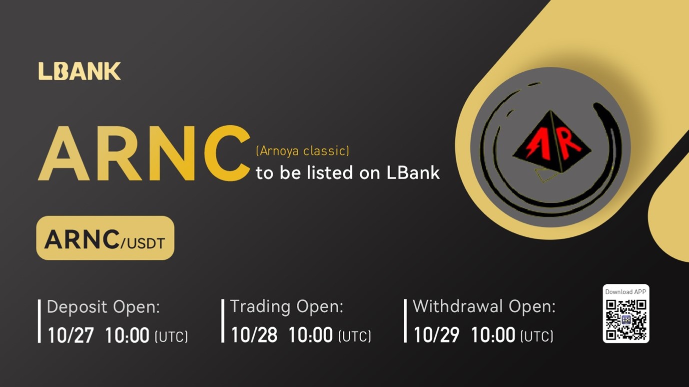 INTERNET CITY, DUBAI, Oct. 28, 2022 – LBank Exchange, a global digital asset trading platform, has listed Arnoya classic (ARNC) on October 28, 2022. For all users of LBank Exchange, the ARNC/USDT trading pair is now officially available for trading.