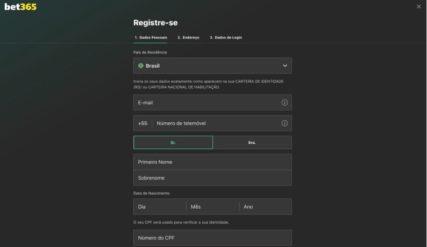 O primeiro passo para apostar na Bet365 é criar a sua conta. O registro é gratuito e leva menos de 5 minutos.