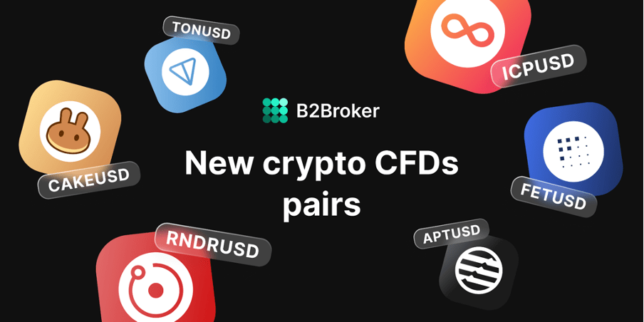 B2Broker, the leading Prime of Prime (PoP) liquidity and technology provider, has expanded its crypto liquidity offerings by launching six new crypto CFDs pairs, each chosen for their massive trading volume and strong market demand. This decision was influenced by the consistent growth in crypto adoption, the recent green light for Bitcoin and Ethereum spot ETFs, and the escalating interest in crypto CFD trading.