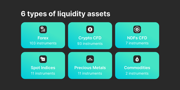 Acknowledging the importance of a diverse range of assets available for trading, the company is thrilled to introduce its wide selection of financial instruments, all conveniently accessible through a single margin account. The standout characteristic is the continuous availability of liquidity for 93 crypto CFD pairs, which can be accessed through FIX API on well-known platforms such as OneZero and PrimeXM. Additionally, the company offers a competitive margin requirement of 10% for major Crypto CFD pairs and 1% for FX pairs, setting itself apart as a pioneer in providing unmatched liquidity among all EU-regulated liquidity providers.