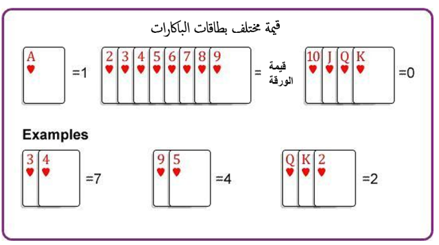 - البطاقات 10، جاك، كوين، كينج: تحمل قيمة صفرية (ليست لها قيمة على الإطلاق).