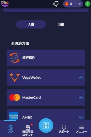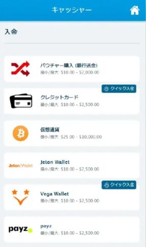操作画面が直感的で、日本語対応もしっかりしているため、オンラインカジノが初めての方でも迷わずプレイできます。入出金方法も複数用意されており、仮想通貨を含めたスムーズな決済環境が整っている点も魅力です。