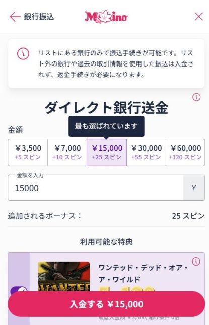 豊富なスロットやライブバカラに加え、初回入金ボーナスや還元率の高いプロモーションも魅力的、銀行振込をメインに使いたいプレイヤーには特におすすめです。