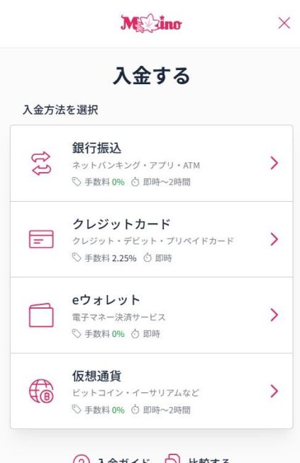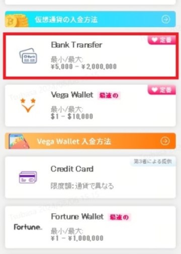 | 種類 | ダイレクト銀行送金・銀行送金 | Payz・MuchBetter・Tigerpay・iWallet・Vega Wallet・STICPAY・Jeton・Astropay・MiFinityなど |