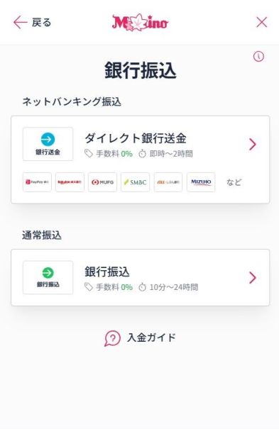 銀行振り込みを導入するオンラインカジノであれば、メガバングだけでなくネット銀行や地方銀行からも入出金ができます。