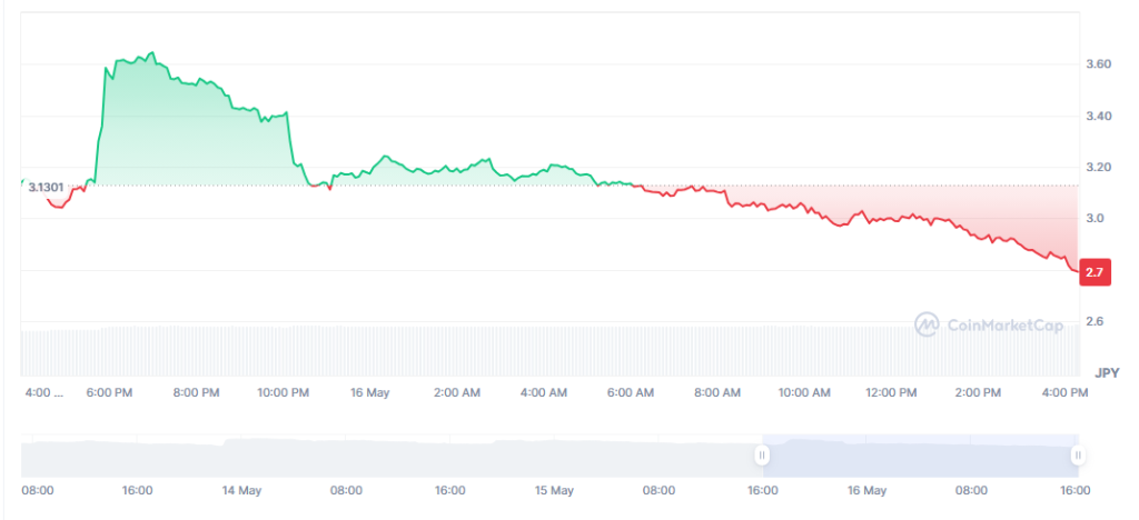 現在のトークン価格は0.021ドル(約3.10円)付近にサポートが見られ、時価総額は約2,100万ドル(約33億円)、流動性は78万ドル(約1億1,900万円)程度となっている。