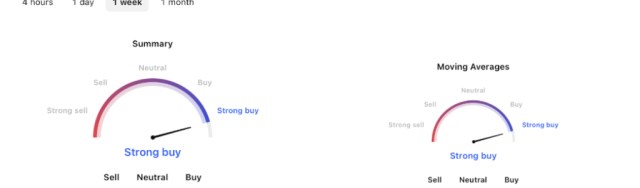 Indicatorii tehnici arată că taurii SOL sunt la conducere, toate semnalele de cumpărare fiind puternic pozitive. 13 din 14 medii mobile dau semnal de creștere.