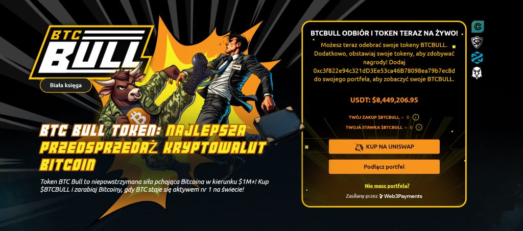 Rynek kryptowalut znów tętni energią. Podczas gdy Bitcoin próbuje odzyskać kluczowe poziomy, a Ethereum zbliża się do przebicia 12 000 PLN, altcoins stają się centrum uwagi dla kupujących, którzy chcą osiągnąć lepsze wyniki niż szeroki rynek. Wśród wschodzących gwiazd tego tygodnia znajdują się cztery altcoins, o których jest głośno ze względu na ich unikalne fundamenty, potężne aktualizacje i rosnącą popularność. W centrum tej zmiany znajduje się BTC Bull ($BTCBULL), projekt, który nie jest tylko kolejną platformą smart kontraktów. BTC Bull ($BTCBULL) oficjalnie wszedł do Top 10 na CoinMarketCap zaledwie kilka dni po swoim publicznym debiucie. Po notowaniu na MEXC i LBank w cenie około 0,0058 PLN, BTC Bull wzrósł w pierwszych godzinach do 0,0065 PLN, a jego kapitalizacja przekroczyła kilka milionów PLN, przyciągając uwagę społeczności.