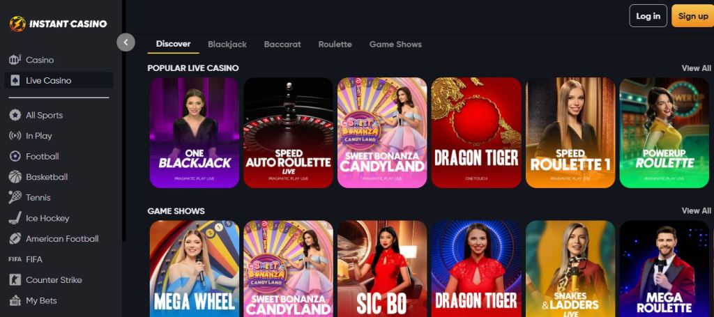 2. Instant Casino – קזינו לייב פשוט, נגיש ועם תשלום בשקלים