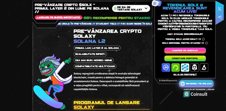 Dacă nu doriți să ratați această fereastră scurtă, accesați pagina oficială de prevânzare Solaxy și achiziționați $SOLX cât timp oferta este încă valabilă. Pentru detalii pas cu pas despre cum să cumperi Solana, consultați ghidul nostru dedicat.