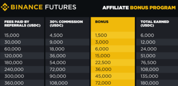 On top of the standard referral commissions, you can also join Binance’s Futures Affiliate Bonus Program.
