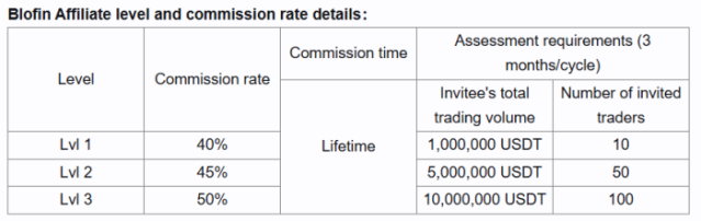 When you become an affiliate, referring your audience to BloFin in articles, blog posts, videos, or by placing ads on your website, you’ll start at level 1 with a 40% commission rate.