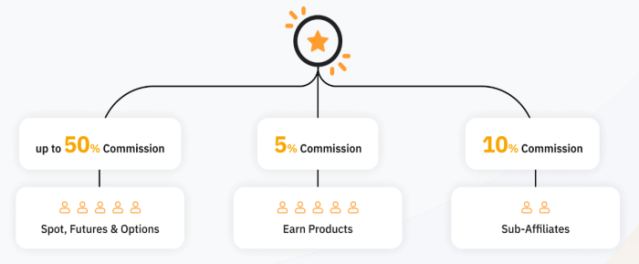 Like OKX, Binance also lets you earn up to 50% commission on trading fees from your referrals through its revenue share model.