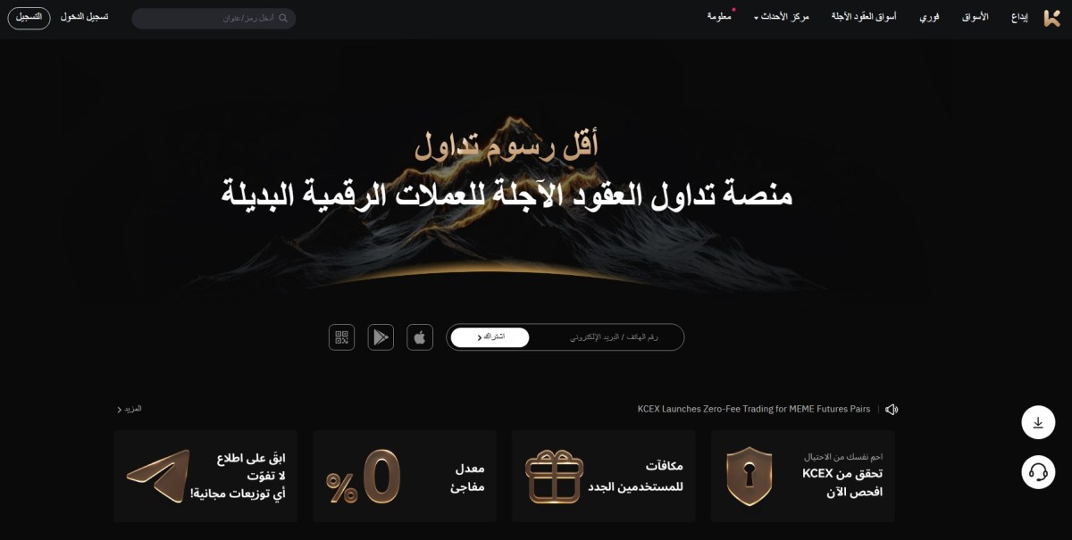 | KCEX | رسوم التداول العادية 0.00%-0.02% | غير محدد | 1000+ |