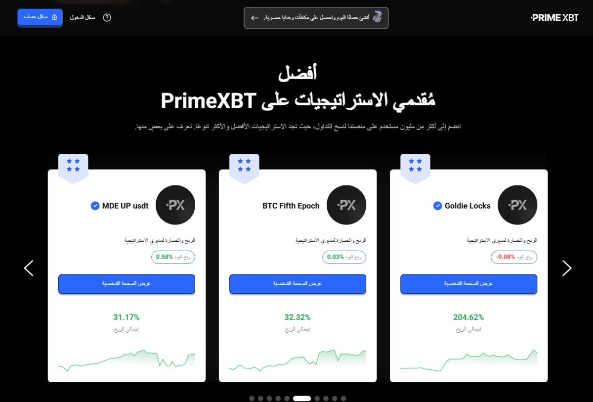 | PrimeXBT | 0.05% لكل صفقة و1% رسوم إدارة شهرية | 20% | 40+ |