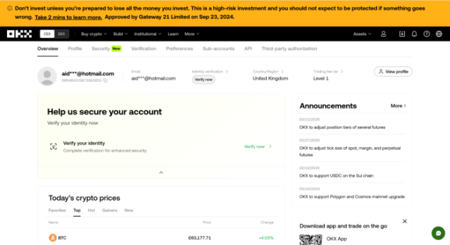 Still, you cannot access the full range of OKX’s services, like Derivatives, OKX Earn (staking), or Crypto Loans. OKX’s available services are unregulated and not covered by the FSCC (Financial Services Compensation Scheme) and the FCA’s consumer protection regulations.